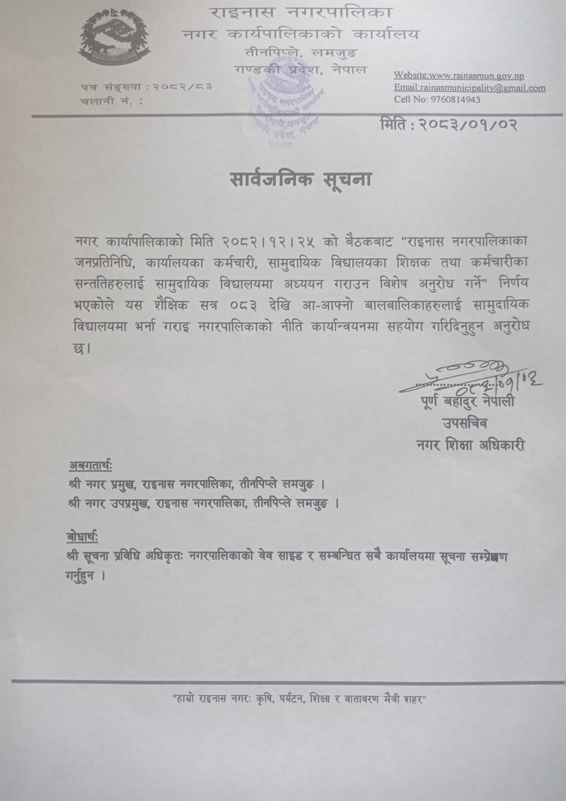 rainasmunicipality@gmail.com/info@rainasmun.gov.np