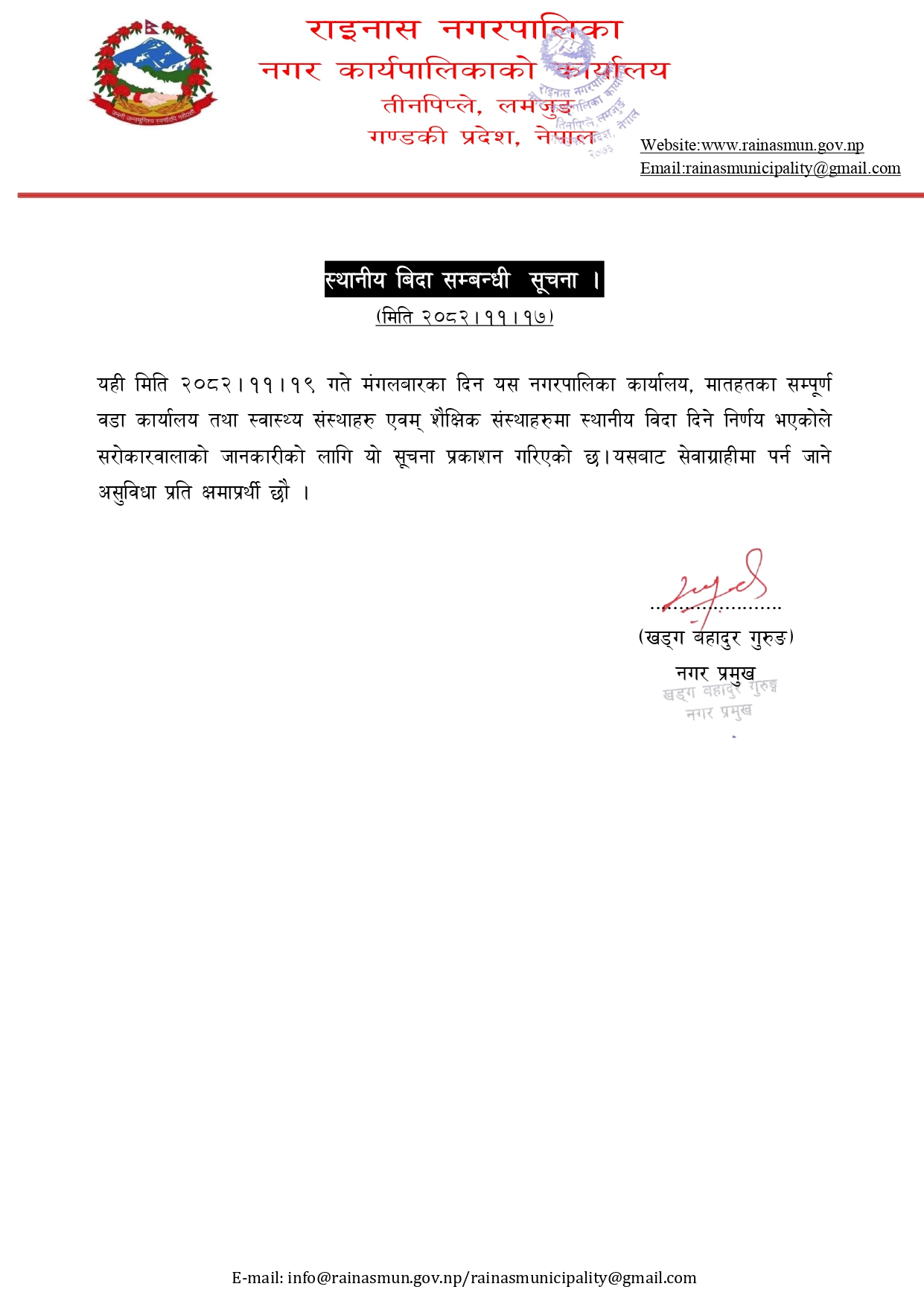 rainasmunicipality@gmail.com/info@rainasmun.gov.np