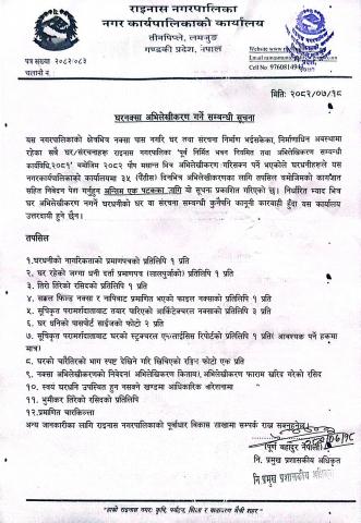 घर नक्सा अभिलेखिकरण गर्ने सम्बन्धी सूचना ।