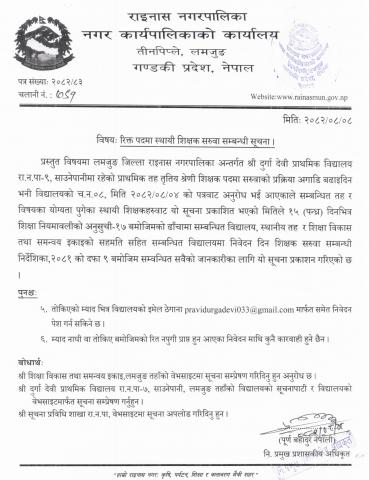रिक्त पदमा स्थायी शिक्षक सरुवा सम्बन्धी सूचना ।